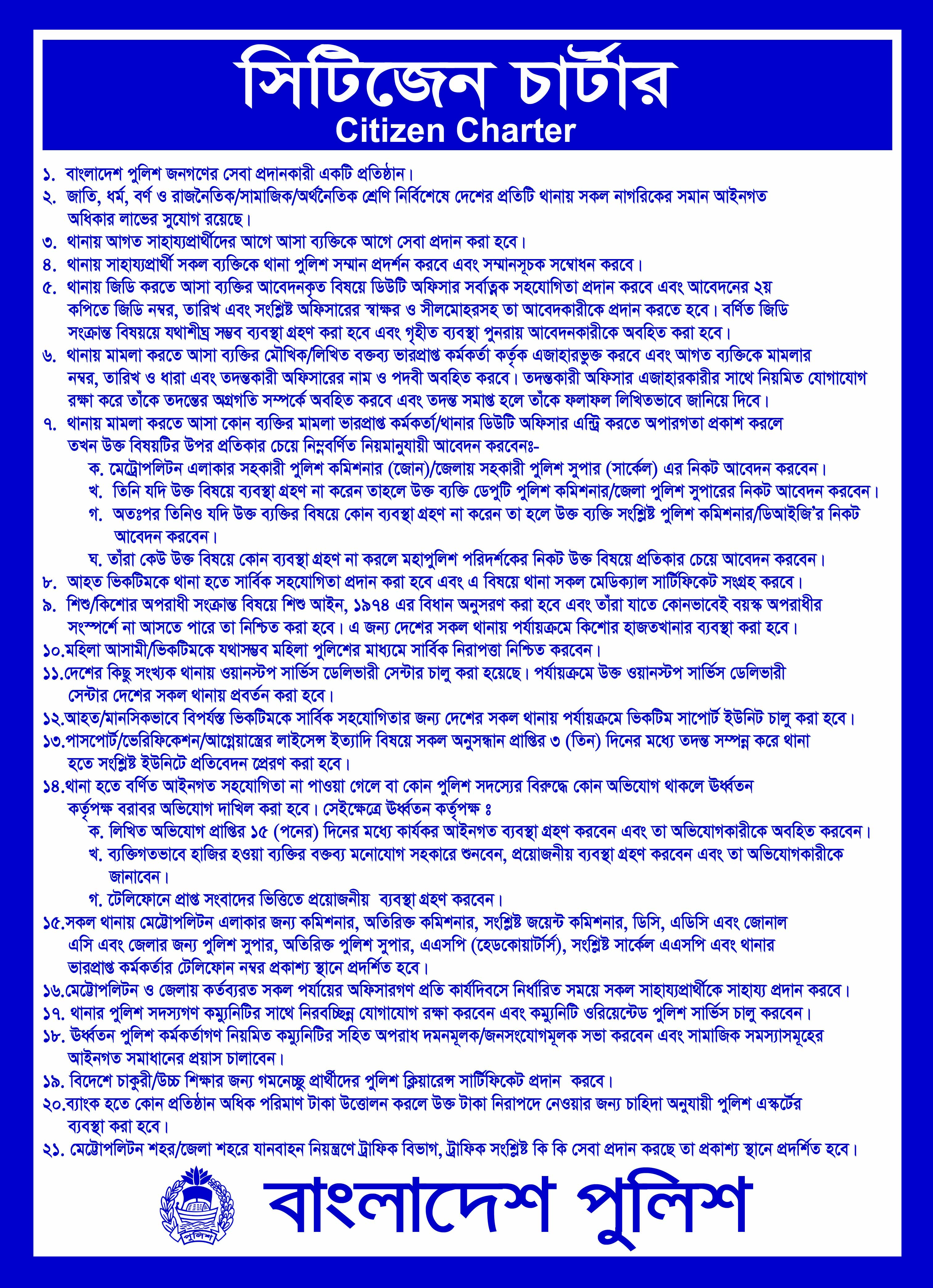৪। থানায় সাহায্য প্রার্থী সকল ব্যক্তিকে থানা পুলিশ সম্মান প্রদর্শন এবং সম্মান সুচক সম্বোধন করা